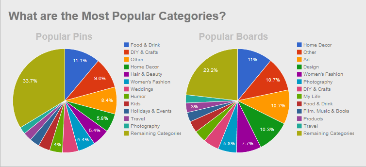 Pinterest låter mig lägga upp alla bilder jag hittar på Internet i ett eget flöde som andra kan se. Deras statistik visar att det är den huvudsakliga sysslan, medan att gilla och kommentera inte är lika intressant. Andras flöden förser mig med en ständig förnyad inspirationskälla till de områden jag har valt att följa. Listan över mest populära ämnen är oerhört intressant att se. Pinterest har över 83% kvinnliga besökare i USA, medan bara 47% av den brittiska besökarskaran är kvinnor. Är de brittiska männen helt enkelt mer suktande efter inspiration i form av vackra bilder och hur kommer det sig att det läggs upp flest bilder på mat och dryck och DIY medan det är mycket färre som skapar boards för samma ämnen? Pinterest har +25 miljoner unika besökare/månad.